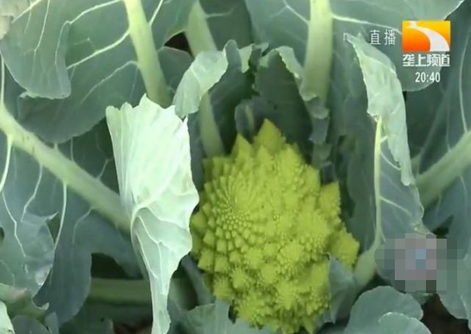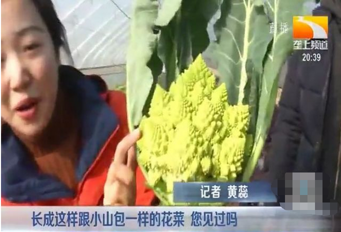 花球綠黃色,圓錐形似寶塔,上百個小花球還密密麻麻的跟螺旋一樣排列。記者黃蕊問到,這花菜長得稀奇古怪的,倒是頭一回見啊。