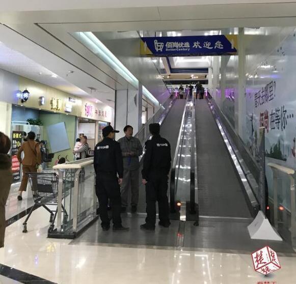 晚8時許,楚天都市報記者來到該商場,該廣場中的保安以設(shè)備檢修為由要求各商場關(guān)門,并拒絕顧客入內(nèi)。記者看到,該商場的手扶電梯與墻體之間約有20厘米的縫隙,沒有密封也沒有網(wǎng)格護攔。記者離開時,看到民警趕來調(diào)查。
