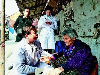 “耿婆婆好!我們來(lái)看您了?!痹谝蛔戏孔忧?,86歲的耿良英老人正在曬太陽(yáng)。看到劉醫(yī)生,她手指著胸口說(shuō):“我的胃病又犯了,還頭暈,正想給你們打電話呢。”劉醫(yī)生仔細(xì)詢問(wèn),量體溫、測(cè)血壓,看老人體溫、血壓都正常,就叮囑老人按時(shí)服藥,并讓護(hù)士小尹在老人常備藥的包裝上寫清用法,隨后兩人繼續(xù)巡診。每月固定巡診兩次,隨時(shí)接受病人及家屬咨詢,緊急情況隨叫隨到。這是他們提供簽約家庭醫(yī)養(yǎng)服務(wù)內(nèi)容的標(biāo)配。