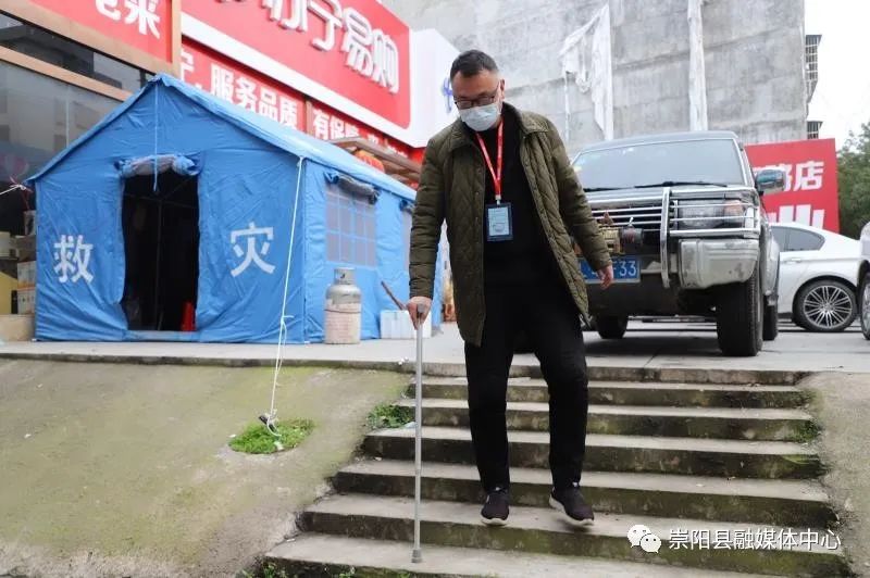 早在2016年,因?yàn)橐粓鲆馔?,造成劉衷輝雙膝半月板壞死,前后進(jìn)行兩次手術(shù)均失敗,被定為二級(jí)傷殘,到現(xiàn)在走路都需要拄著拐杖慢慢挪動(dòng),行動(dòng)十分不便。即便是在這樣的情況下,劉衷輝沒有退縮,柱起拐杖就來到了天城鎮(zhèn)和平社區(qū)政協(xié)網(wǎng)格點(diǎn)參與卡點(diǎn)值守工作。