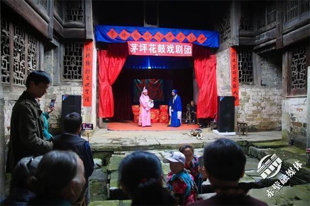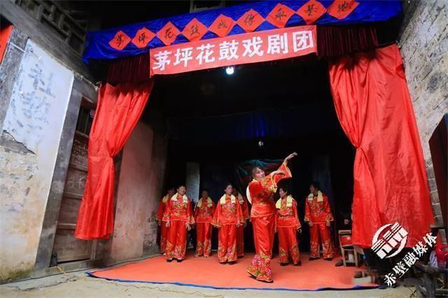茅坪坐落于葛仙山腳下,在茅坪高屋這個(gè)幾輩人傳下來(lái)的大宅子里一支由村民們自發(fā)組建的茅坪花鼓戲劇團(tuán)每周四風(fēng)雨無(wú)阻在此排練或演出。