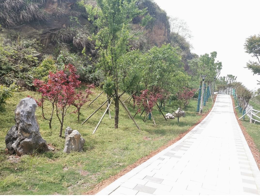 記者漫步生態(tài)公園,成片的月季、百合搖曳生姿,道路兩側(cè)的紅葉石楠幼苗綠意盎然,山崖上一排排小櫸樹昂首挺胸……如今,800畝廢棄礦山已完成一半治理,共栽種各種樹木3萬株,種植花草500畝。