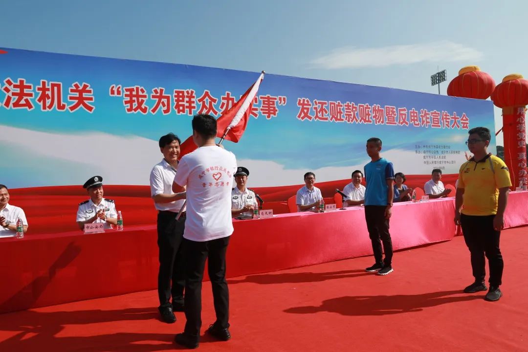 6月24日上午,全市政法機(jī)關(guān)隆重舉行“我為群眾辦實(shí)事”發(fā)還贓款贓物暨反電詐宣傳大會(huì),集中返還在偵察破案中追繳的部分贓款,以及汽車、筆記本電腦、手機(jī)、煙酒、郵票等被盜、被騙贓物,總計(jì)價(jià)值5038.6萬元,彰顯了公安機(jī)關(guān)的打擊戰(zhàn)果,震懾違法犯罪,進(jìn)一步提升人民群眾安全感和滿意度。