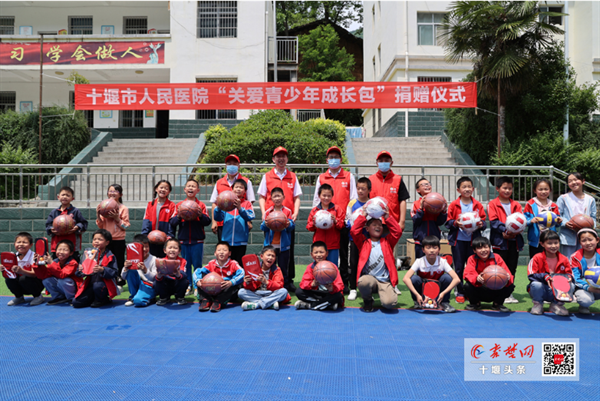 簡單用過午餐,鐘森顧不得午休,又帶領駐村工作隊同志,到槐樹林特場小學,為孩子們送去特別的“六一禮物”——十堰人醫(yī)干部工捐贈的價值1.2萬元的15份“關愛青少年成長包”,每個“成長包”內有一個籃球、一個排球、一個足球、一副羽毛球拍和兩筒羽毛球、一副乒乓球拍和一袋乒乓球,這些包含人醫(yī)情的“成長包”,將分配到全校六個年級,由班級管理、全體學生共享。孩子們抱著嶄新的節(jié)日禮物,開心得合不攏嘴,紛紛感謝十堰人醫(yī)叔叔阿姨們的愛心善舉。