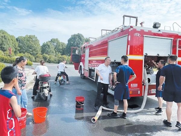 近日,竹溪縣水坪鎮(zhèn)二高山地區(qū)多個行政村群眾飲用水告急,該鎮(zhèn)黨委政府迅速聯(lián)系縣消防大隊,協(xié)調安排消防車到缺水的村莊,給村民送去飲用水,緩解用水之急。
