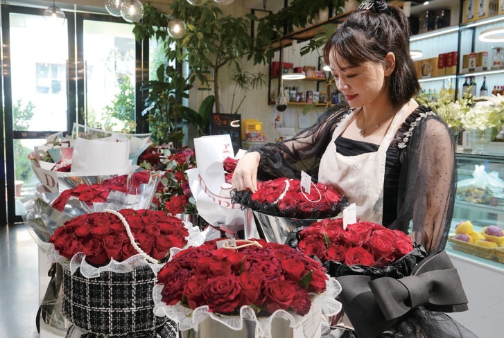 據(jù)這些花店老板介紹,訂花群體普遍為二三十歲的年輕人,送花給戀人,增加儀式感。同時(shí),也有一些女性到花店自行購(gòu)買鮮花擺放在家里,增添浪漫節(jié)日氛圍。