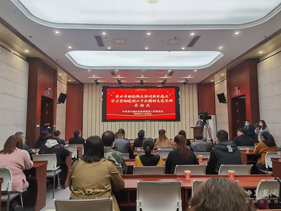 湖北師范大學(xué)理論熱點面對面講師、副教授王明為在飛天白鷺演藝中心宣講。