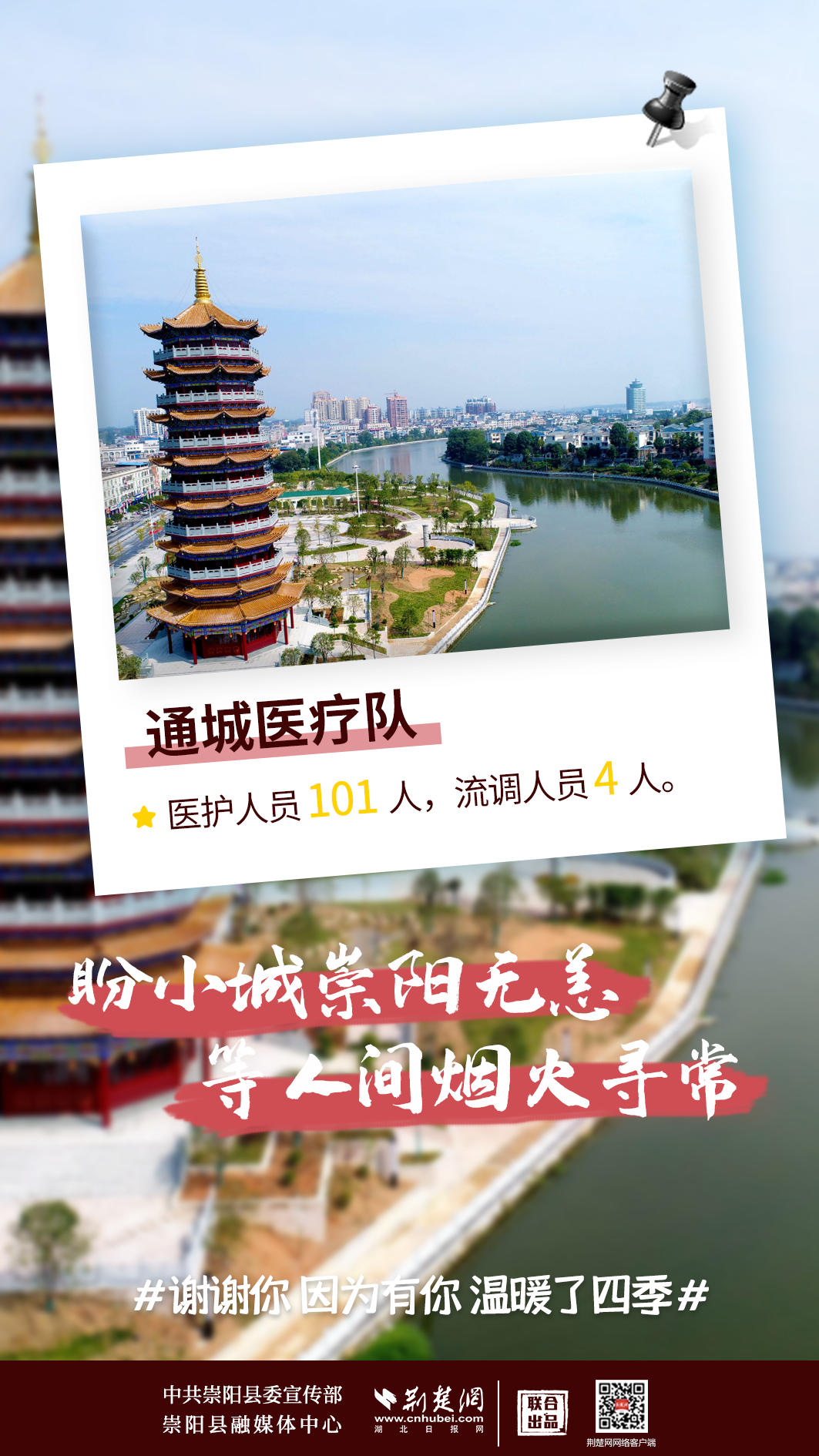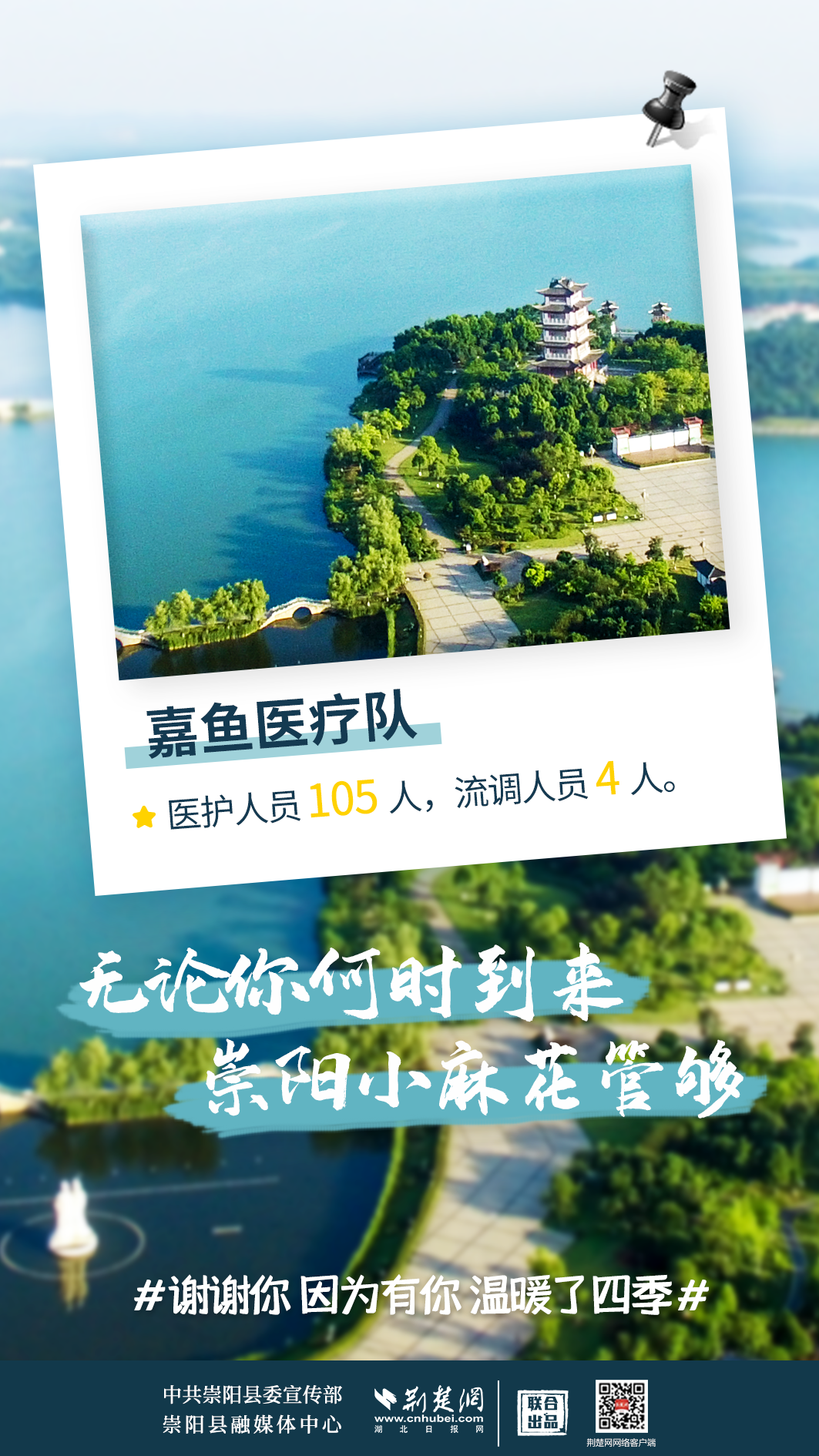 修我甲兵,與子偕行。在崇陽縣疫情防控形勢最嚴(yán)峻、最艱難的時刻,來自咸寧市直、通山縣、通城縣、嘉魚縣4支醫(yī)療隊,489名醫(yī)務(wù)人員,火速支援崇陽抗疫,馬不卸鞍,人不解甲,便同51萬崇陽人民一道相守偕行,并肩作戰(zhàn)。