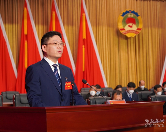 華容區(qū)政協(xié)黨組書記、主席熊枝江作《中國人民政治協(xié)商會議華容區(qū)第九屆委員會常務(wù)委員會工作報(bào)告》。