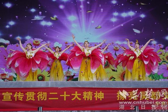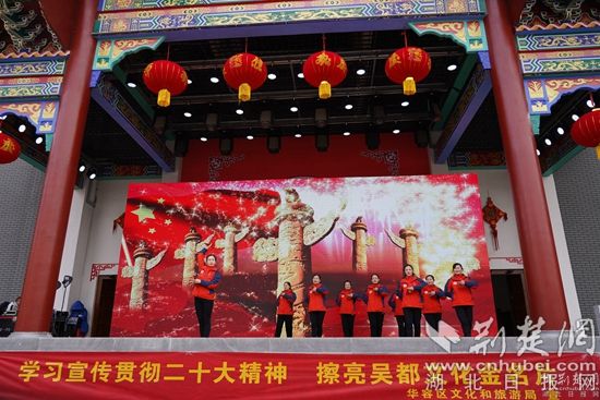 新春廟會(huì)將黨的二十大宣講、文藝演出與民俗表演相結(jié)合,開場(chǎng)舞蹈《荊楚歡歌》、湖北大鼓《二十大精神放光芒》、詩朗誦《航程》、反串《長(zhǎng)袖舞》、男聲獨(dú)唱《我和我的祖國(guó)》等文藝節(jié)目和傳統(tǒng)的舞獅、雜技、魔術(shù)等老百姓喜聞樂見的表演在廟會(huì)現(xiàn)場(chǎng)輪番上演。