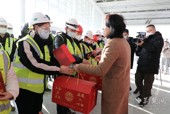 為建設(shè)者送年貨。姜夢(mèng)瑤 攝