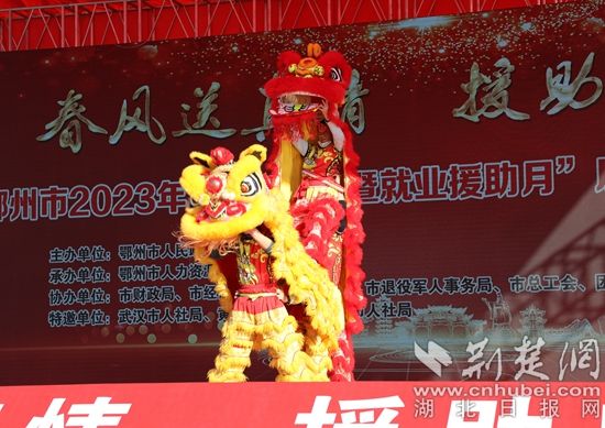 與此同時(shí),暖場表演鼓樂齊鳴、熱火朝天,歌聲聲動(dòng)梁塵,舞獅活靈活現(xiàn)、精彩絕倫,引得觀者連連叫好?,F(xiàn)場一片歡快熱鬧的場景,好似寓意著每一位求職者滿載而歸。