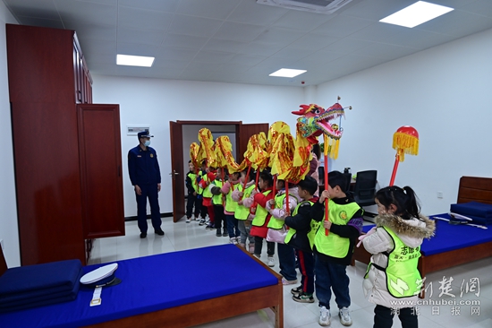 荊楚網(湖北日報網)訊(通訊員耿偉鵬)在傳統(tǒng)元宵佳節(jié)即將到來之際,2月3日下午,黃石市西塞山區(qū)藍天銀晶幼兒園師生代表組建的舞龍隊來到了西塞山區(qū)八泉消防站參觀學習,與消防指戰(zhàn)員共度元宵佳節(jié)。