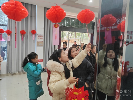 華容區(qū)蒲團(tuán)鄉(xiāng)舉辦“誦經(jīng)典猜燈謎鬧元宵”活動。附近的居民家庭紛紛來到文化站農(nóng)家書屋,參與猜燈謎環(huán)節(jié),大家在一盞盞花燈下,思索蘊(yùn)藏著廉政小知識的謎語。書于燈,映于燭,賦于形,藏于字,樂趣無窮的思索求證也將廉潔文化潛移默化的傳遞到群眾心中。