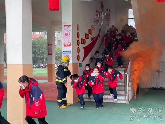 濃煙彌漫,警報(bào)響起,“險(xiǎn)情”發(fā)生......學(xué)校立即啟動消防應(yīng)急疏散預(yù)案,全體學(xué)生在老師的帶領(lǐng)下,按照既定的疏散路線,彎腰低頭,捂住口鼻,迅速有序地撤離到操場安全區(qū)域。