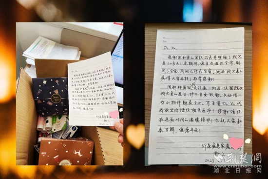 荊楚網(wǎng)(湖北日?qǐng)?bào)網(wǎng))訊(通訊員 范琳琳 何幸運(yùn))“感謝諸位在這段時(shí)間的溫暖陪伴!”日前,黃岡市中心醫(yī)院泌尿外科收到一份誠意滿滿的禮物。紙盒里不僅裝滿糖果、潤唇膏、護(hù)手霜等暖心小禮物,還有一封珍貴的手寫感謝信。