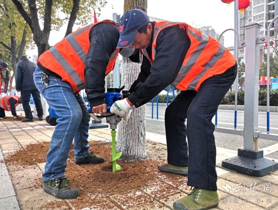 荊楚網(wǎng)(湖北日?qǐng)?bào)網(wǎng))訊(通訊員 鄭新華 陶晶晶 楊宏俊)“我們采購(gòu)了6臺(tái)打孔機(jī),可以把肥料直接送到樹(shù)木的根部,利于樹(shù)木直接吸收。當(dāng)夏季高溫季節(jié)來(lái)臨,可以通過(guò)插管給樹(shù)木灌水補(bǔ)充水分。”2月13日,麻城市金橋大道主干道,技術(shù)人員在推進(jìn)城市道路綠化提升工程現(xiàn)場(chǎng)作業(yè)時(shí)向筆者介紹。