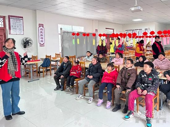 大二護(hù)理專業(yè)的丁佳慧在2021年就加入了學(xué)校的“星火支教”團(tuán)隊(duì),寒假回到家鄉(xiāng)麻城后,她組建“閱而有味讀書會”。在春節(jié)期間,聯(lián)合麻城市公益組織——青力締造服務(wù)隊(duì),一起走進(jìn)麻城市三河口鎮(zhèn)碧楓沖村委會留守兒童之家,為30多個(gè)小朋友留守的兒童送去溫暖禮包,陪他們做游戲,并為他們帶去了別開生面的花燈制作課。