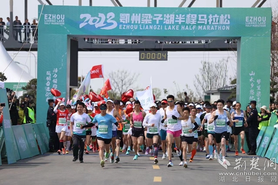 2023鄂州梁子湖半程馬拉松開跑時(shí)刻。通訊員 供圖
