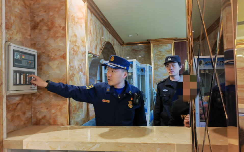 消防員在KTV進行檢查