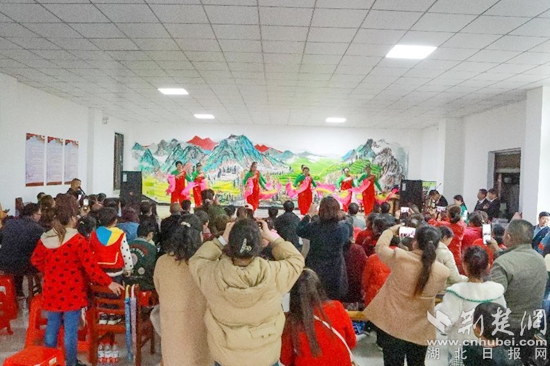 荊楚網(wǎng)(湖北日報(bào)網(wǎng))訊(通訊員毛紅平 吳月兵 胡彩明)和風(fēng)送溫暖,春雨潤心田。4月22日,天空下著小雨,在紅安縣覓兒寺鎮(zhèn)普安橋的文化禮堂,里面一片熱鬧非凡,全鎮(zhèn)20多個(gè)村的群眾冒著小雨,爭相趕集文化匯演。
