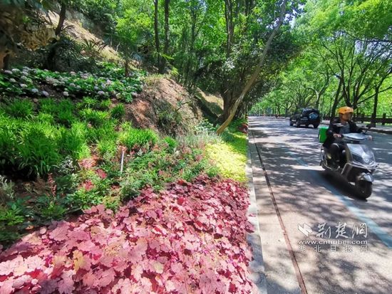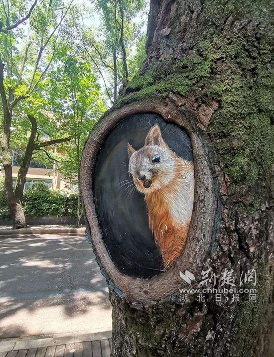 從溫泉谷到黨校入口處的山體雜草和垃圾已清理干凈,種上了耐陰的繡球花、彩葉草、網(wǎng)紋草等花草,展現(xiàn)出別樣風(fēng)情;街對(duì)面的道行樹上放上了仿真松鼠、貓頭鷹和桂花,樹洞橫截面“長(zhǎng)滿”了松鼠、龍貓,淦河邊步道旁磚砌的窨井蓋因勢(shì)利導(dǎo),做成了樹樁的模樣,配上微塑蘑菇,幾可以假亂真;電箱穿上了風(fēng)景類的彩繪新衣……栩栩如生的小動(dòng)物和與周圍環(huán)境渾然一體的彩繪,讓新升級(jí)的月亮灣網(wǎng)紅路“萌化”了!