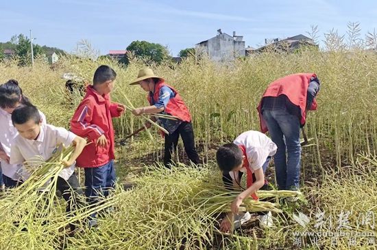 荊楚網(wǎng)(湖北日報網(wǎng))訊(通訊員劉志勇)“田間少閑月,五月人倍忙”。轉(zhuǎn)眼間,紅安縣永河小學(xué)勞動實踐基地里的油菜進入收獲期,5月12日,永河小學(xué)各班師生趁著晴好天氣搶收油菜,現(xiàn)場一派繁忙的豐收景象。