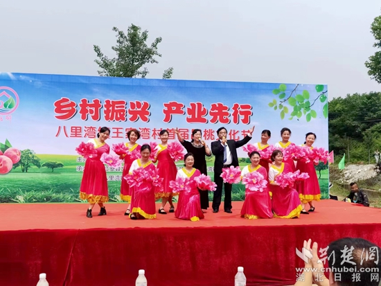 此次活動由八里灣鎮(zhèn)政府主辦,紅安縣文化館、八里灣鎮(zhèn)王家灣村、八里灣鎮(zhèn)文化站、八里灣鎮(zhèn)農業(yè)服務中心聯(lián)合承辦,伴隨著大氣優(yōu)美的開場歌舞《春風十里》,桃醉果園廣場上人頭攢動,熱鬧非凡,更有表演唱《辣嫂子》、京劇《智斗》等節(jié)目將演出推向高潮,形式多樣的文藝節(jié)目輪番上演,現(xiàn)場觀眾掌聲雷鳴。