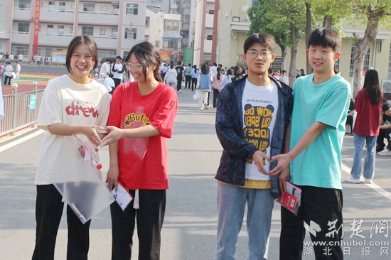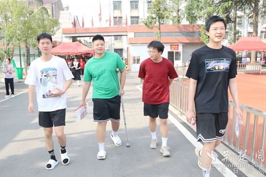 他們當中有的考生身穿紅色衣服,預(yù)祝考試大捷;在進考場前,有的考生圍在一起,擺出愛心的手勢,露出自信的笑容,高呼“戰(zhàn)勝高考,我能,我一定能”的口號響徹云霄;有的考生雖然在考前腿部或頭部受傷,但他們沒有顯示畏懼的神態(tài),反而展現(xiàn)了更堅強的毅力與一往無前的勇氣,面帶笑容,堅定地邁入考場……一幕幕從容的畫面詮釋著勇毅前行,一張張自信的笑臉展示著超越自我。