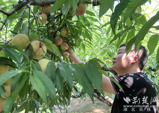 “您前期預(yù)訂的360斤桃,我們已經(jīng)備好貨了?!痹诓烧兀S岡市豐順種植專業(yè)合作社理事長陳柏超正在跟客戶核對訂單。