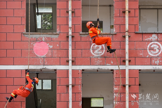 此次比武競賽活動設(shè)置有5000米跑、4×400米接力、4×100米游泳接力、繩索攀爬、負(fù)重登10樓、攀登15米金屬拉梯操和業(yè)務(wù)理論考試七個項(xiàng)目。