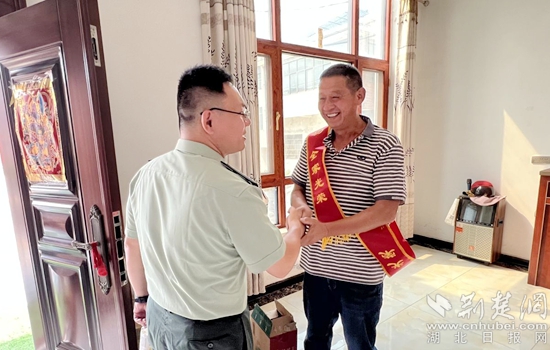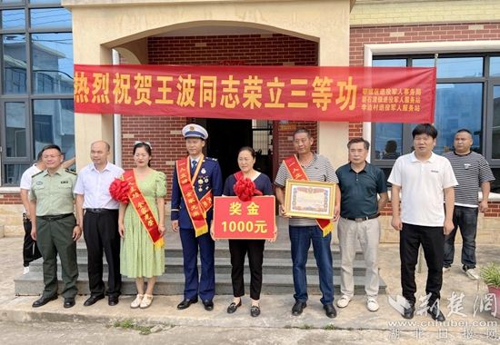 荊楚網(wǎng)(湖北日?qǐng)?bào)網(wǎng))訊(通訊員 丁元中)愛(ài)國(guó)奉獻(xiàn)在消防,立功喜訊傳家鄉(xiāng)。6月14日上午,鄂州碧石渡鎮(zhèn)李邊村1組熱鬧非凡,鄂城區(qū)退役軍人事務(wù)局、碧石渡鎮(zhèn)武裝部一行人給榮立三等功的現(xiàn)役軍人王波軍屬送上喜報(bào)和慰問(wèn)金。