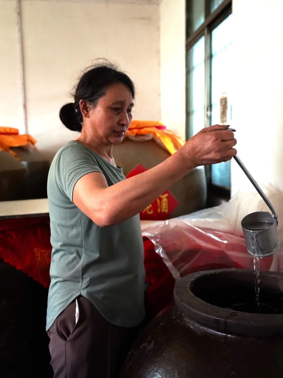 酒液落入壇中
