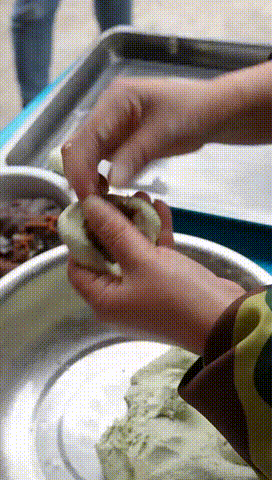 采艾草最鮮嫩的葉尖兒煮沸后過(guò)濾出青色汁液