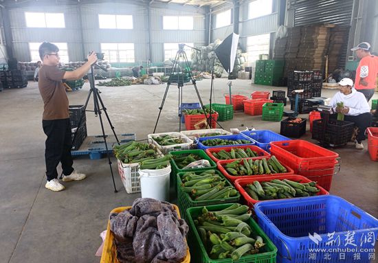 荊楚網(wǎng)(湖北日報網(wǎng))訊(通訊員尹宏偉)6月27日,黃州區(qū)堵城鎮(zhèn)葉路洲余嶺村的湖北福耕生態(tài)農(nóng)業(yè)發(fā)展有限責任公司蔬菜分揀倉庫里,公司負責人吳易翔正對著鏡頭,賣力地通過抖音直播帶貨。