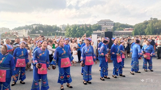 活動(dòng)現(xiàn)場(chǎng)位于海拔1230米的云中湖畔,涼風(fēng)習(xí)習(xí),人聲鼎沸。當(dāng)天,三大主題活動(dòng)火熱上演。“云頂盛宴”邀請(qǐng)游客,在九宮山頂共享林中雞、竹筍、農(nóng)家豆腐等“九宮九寶”美食;“云中盛演”邀請(qǐng)國(guó)家一級(jí)演員徐千惠等演出人員,帶來(lái)精彩的歌舞和戲曲表演;“云邊嗨吃”以美味的燒烤為主打,為游客呈現(xiàn)夏日舌尖盛宴。
