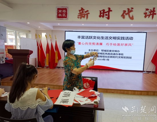 荊楚網(wǎng)(湖北日報(bào)網(wǎng))訊(通訊員 丁元中)一刀一剪揚(yáng)正氣,一毫一厘頌清風(fēng)。7月12日上午,鄂城區(qū)鳳凰街道南塔社區(qū)聯(lián)合鄂州市婦聯(lián)、鄂城區(qū)婦聯(lián)、鳳凰街道婦聯(lián)開展了“童心向黨剪清廉,巧手繪蓮好家風(fēng)”剪紙活動,將廉政素材與傳統(tǒng)剪紙相結(jié)合,用民俗藝術(shù)展現(xiàn)清廉之風(fēng)。