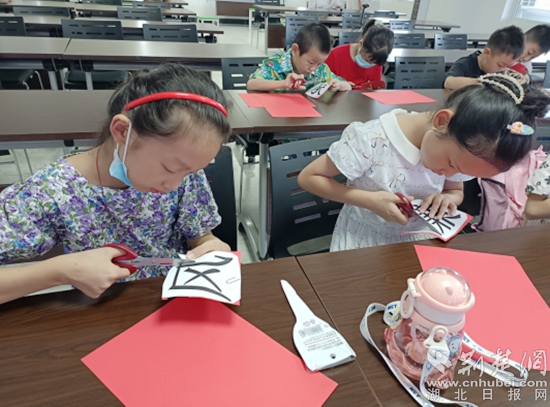 而后,小朋友們你一言我一語,討論著怎么把作品剪好。雖然很多小朋友是第一次接觸剪紙,但完成的作品也是有模有樣。大家剪“廉”字、刻“蓮”花,一雙雙巧手精心雕琢,一幅幅作品蘊(yùn)含廉潔情懷,“廉”心共筑的美好愿景通過剪紙得以表達(dá),崇廉尚潔的正能量也通過作品互相傳遞。