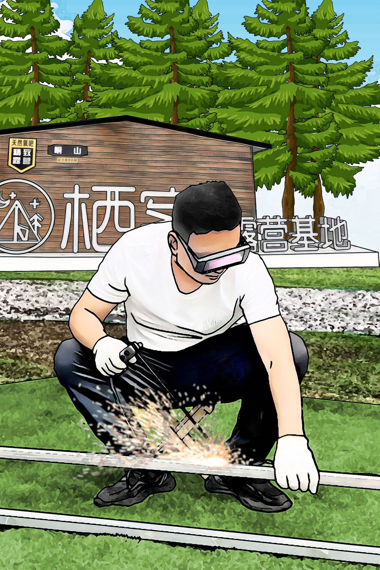 2022年8月,陳川正式與峒山村簽約,投資300萬元,在十里水杉林建設(shè)棲客露營基地。在基地建設(shè)過程中,陳川既是老板也是員工,設(shè)計圖紙,搬運(yùn)器材,焊接構(gòu)件……幾乎什么活兒都干??吹竭@個后生如此上進(jìn),熱心的村民們紛紛前往工地幫忙。