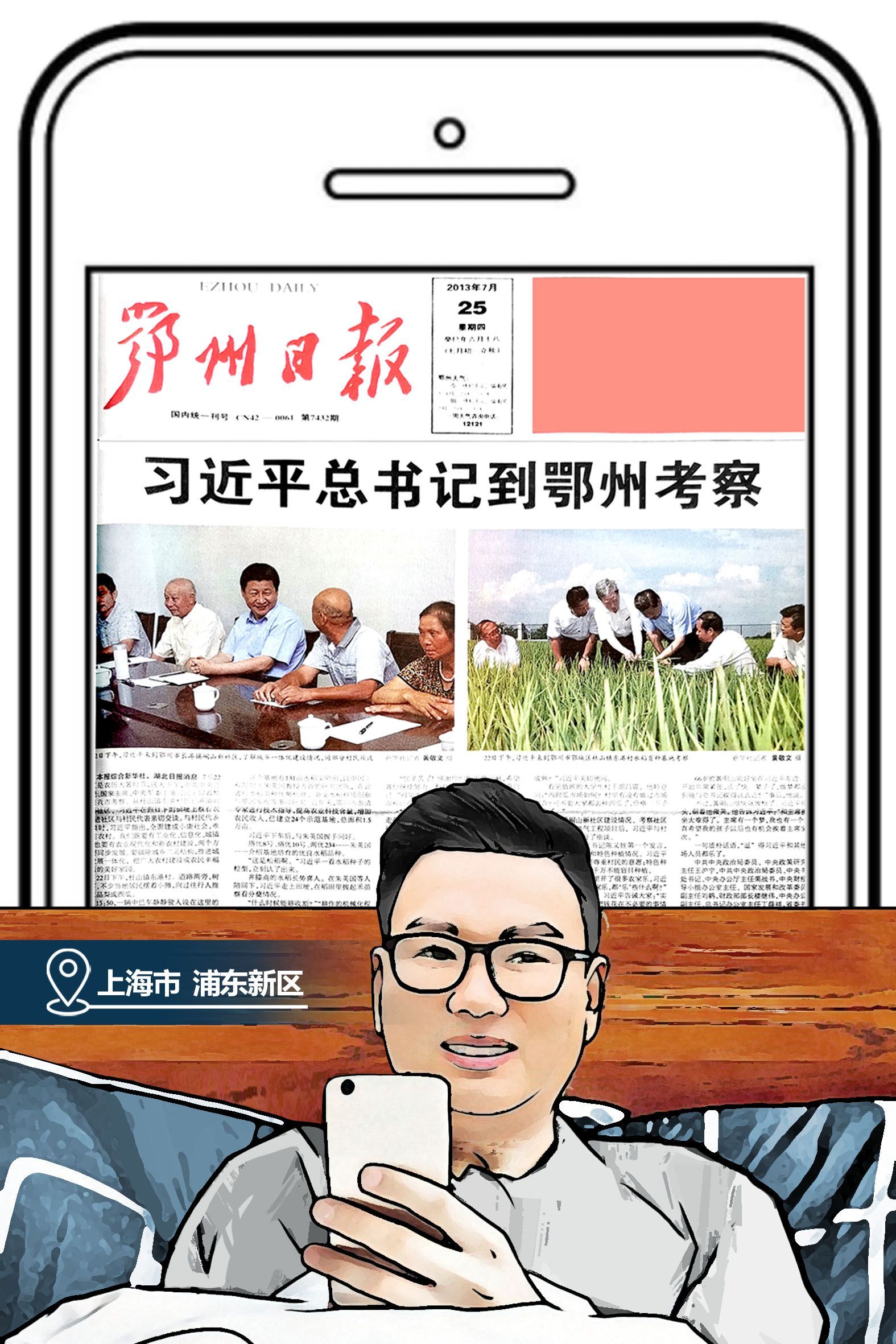 2013年7月22日,得知習(xí)近平總書記視察峒山村,陳川喜出望外,第一時間向身邊好友分享這個好消息。