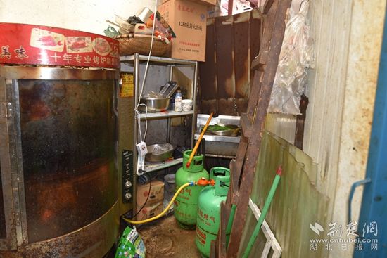 一天前,黃石港區(qū)消防救援大隊在對轄區(qū)一農(nóng)貿(mào)市場開展消防安全檢查時,發(fā)現(xiàn)該市場熟食區(qū)經(jīng)營門面系泡沫彩鋼板搭建。此外,在一家泡沫彩鋼板搭建的烤鴨店內(nèi),監(jiān)督員還發(fā)現(xiàn)店內(nèi)兩瓶液化氣鋼瓶就緊挨著正在運(yùn)行的烤爐擺放,未保持安全間距。