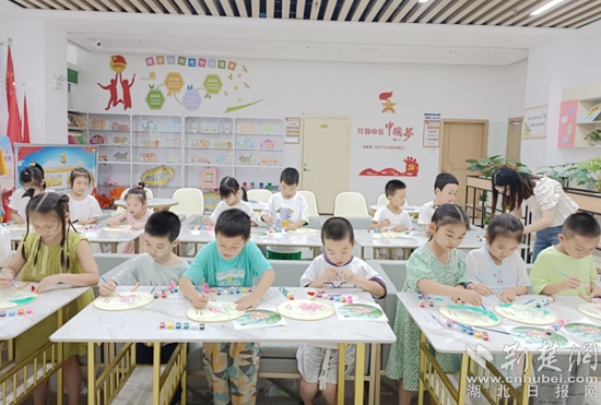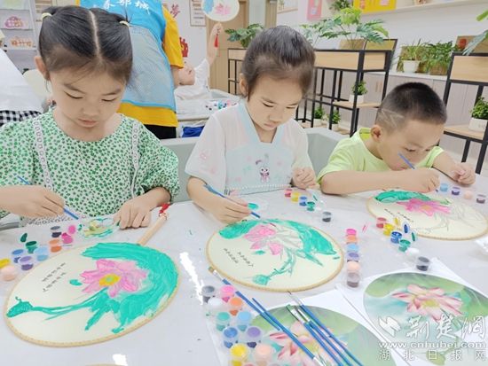 活動(dòng)現(xiàn)場(chǎng),社區(qū)工作人員提前準(zhǔn)備了空白的團(tuán)扇、水彩顏料及各種繪畫工具,由老師向大家演示了正確的手繪方法。小朋友們拿到團(tuán)扇和畫材后迫不及待開始動(dòng)手創(chuàng)作,盡情發(fā)揮著自己的創(chuàng)作力。孩子們個(gè)個(gè)聚精會(huì)神,一筆一畫、精雕細(xì)琢。一雙雙巧手在扇面上繪制出一朵朵風(fēng)姿素雅的蓮花,孩子們以扇寄意,描繪出自己心中的廉潔之花。