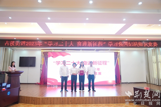 荊楚網(wǎng)(湖北日報網(wǎng))訊(通訊員丁元中)7月26日下午,鄂城區(qū)古樓街道舉辦“學(xué)習(xí)二十大,奮進(jìn)新征程”學(xué)習(xí)強(qiáng)國紀(jì)法知識競賽。全街社區(qū)、股經(jīng)社、中心學(xué)校、市場監(jiān)管所、飛鵝衛(wèi)生服務(wù)中心、怡亭銘衛(wèi)生服務(wù)中心、街辦機(jī)關(guān)等20支代表隊60名選手參賽。