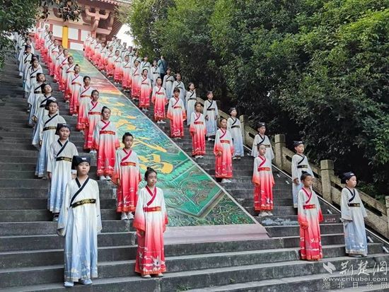 上午9點半,在鄂州市西山武昌樓前舉行了“百人齊誦快閃”活動,現(xiàn)場浸潤著濃厚的詩詞氛圍。