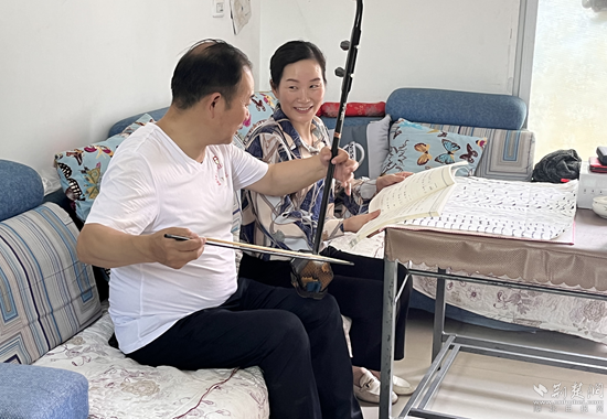 “這句詞應(yīng)該這么唱……你這個節(jié)拍錯了……”清晨常常成為夫妻倆相互“切磋”的時光。為保證宣講效果,田志剛夫妻利用閑暇時光練習宣講詞、控制好快板的力度和鼓點節(jié)奏,也會在一起唱唱黃梅戲、拉拉二胡、跳跳舞。