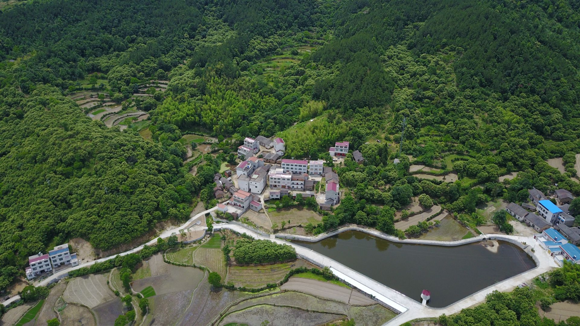 明山水庫(kù),煙波浩渺,蜿蜒曲折,其狀如龍,栩栩如生,群山環(huán)抱,風(fēng)景秀麗。