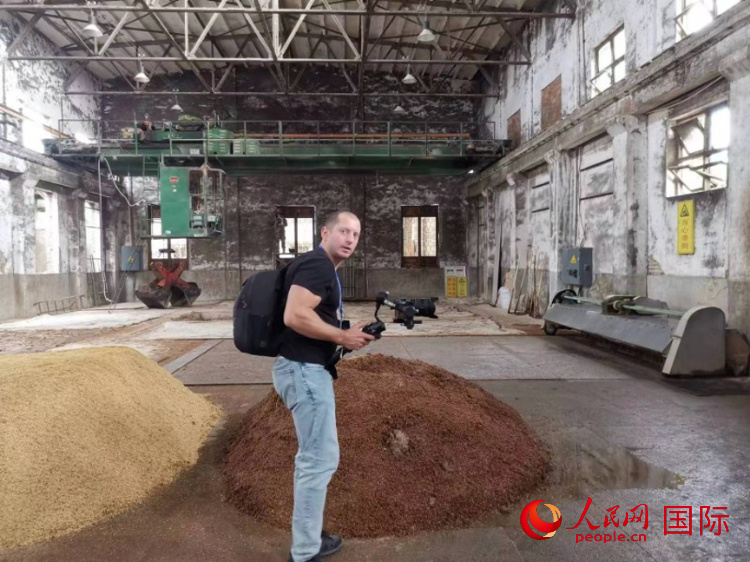 | 俄羅斯金磚電視臺(tái)攝像師帕維爾·波洛溫卡拍攝西鳳酒釀酒舊址。人民網(wǎng)記者 楊倩攝 |