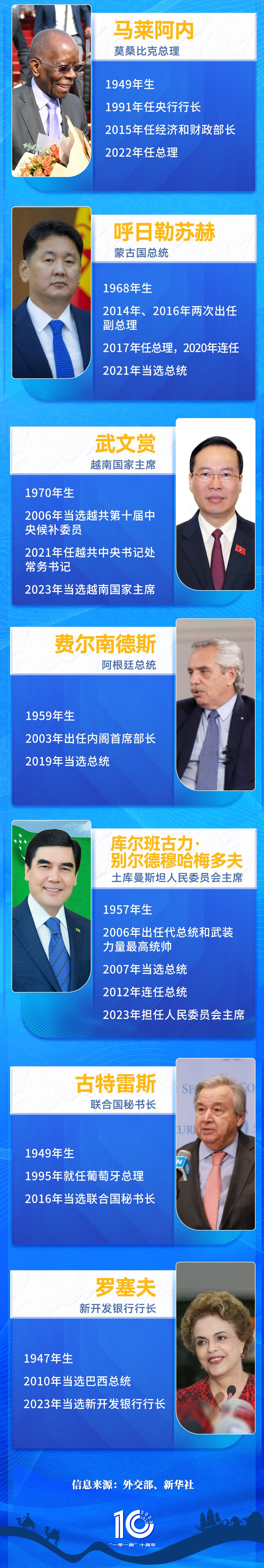 這些外國領(lǐng)導(dǎo)人和國際組織負(fù)責(zé)人都是誰?他們有怎樣的主要經(jīng)歷?我們來一圖讀懂——