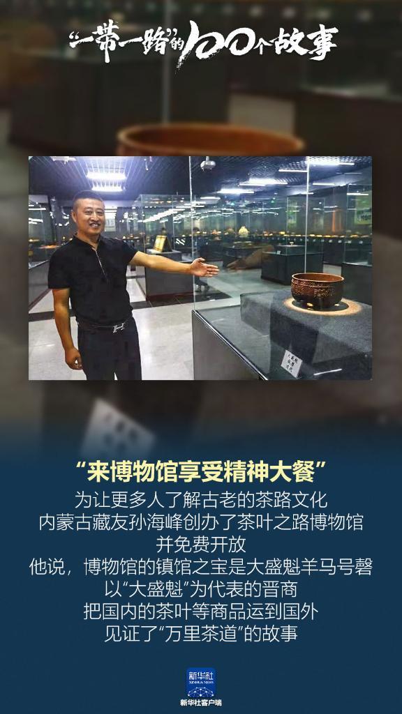 “來博物館享受精神大餐?!睘樽尭嗳肆私夤爬系牟杪肺幕瑑?nèi)蒙古藏友孫海峰創(chuàng)辦了茶葉之路博物館,并免費(fèi)開放。他說,博物館的鎮(zhèn)館之寶是大盛魁羊馬號磬,以“大盛魁”為代表的晉商,把國內(nèi)的茶葉等商品運(yùn)到國外,見證了“萬里茶道”的故事。(記者:趙澤輝)