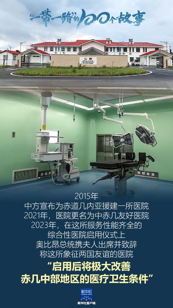 2015年,中方宣布為赤道幾內亞援建一所醫(yī)院。2021年,醫(yī)院更名為中赤幾友好醫(yī)院。2023年,在這所服務性能齊全的綜合性醫(yī)院啟用儀式上,奧比昂總統(tǒng)攜夫人出席并致辭,稱這所象征兩國友誼的醫(yī)院“啟用后將極大改善赤幾中部地區(qū)的醫(yī)療衛(wèi)生條件”。